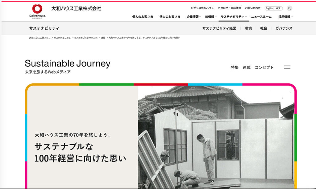 大和ハウス工業株式会社様 ホームページ内連載記事 Sustinable Journeyのインフォグラフィック