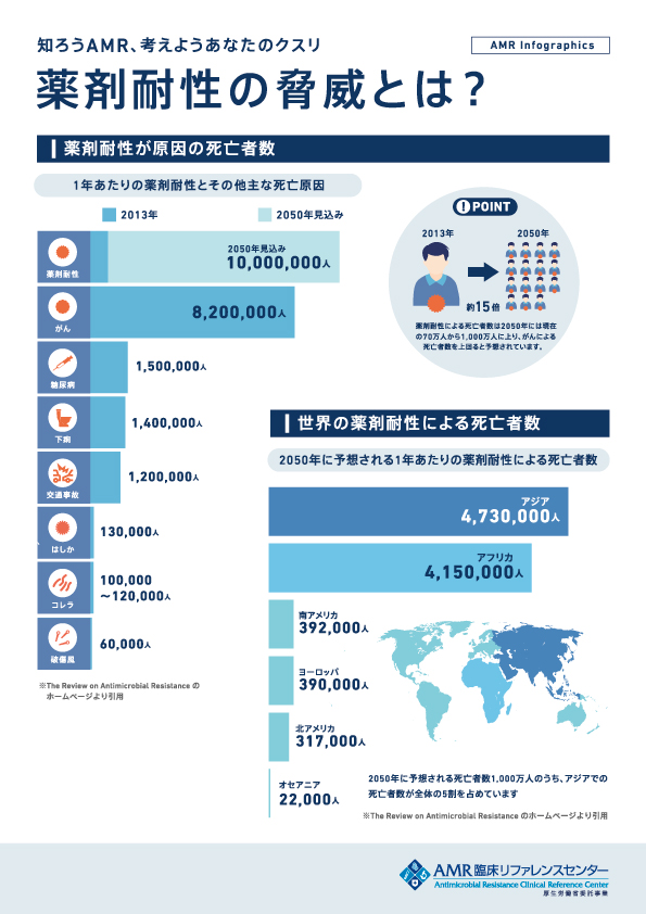 国立健康危機管理研究機構 AMR臨床リファレンスセンター様 ホームページ内記事 インフォグラフィックで知る! 薬剤耐性(AMR)のグラフィック