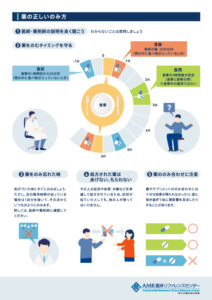 特に「薬剤耐性が生まれるまで」のプロセスでは、段階的に状況が変化していく様子を視覚的に整理し、難解になりがちな概念をストーリーとして理解できる構成にしました。後半では「正しい薬の飲み方」という具体的な行動指針を提示し、単なる知識提供にとどまらず、生活者の行動変容につながるデザインを意識しています。