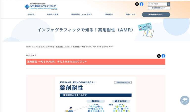 国立健康危機管理研究機構 AMR臨床リファレンスセンター様のホームページ内記事「インフォグラフィックで知る! 薬剤耐性(AMR)」にて、インフォグラフィックデザインを担当いたしました。
